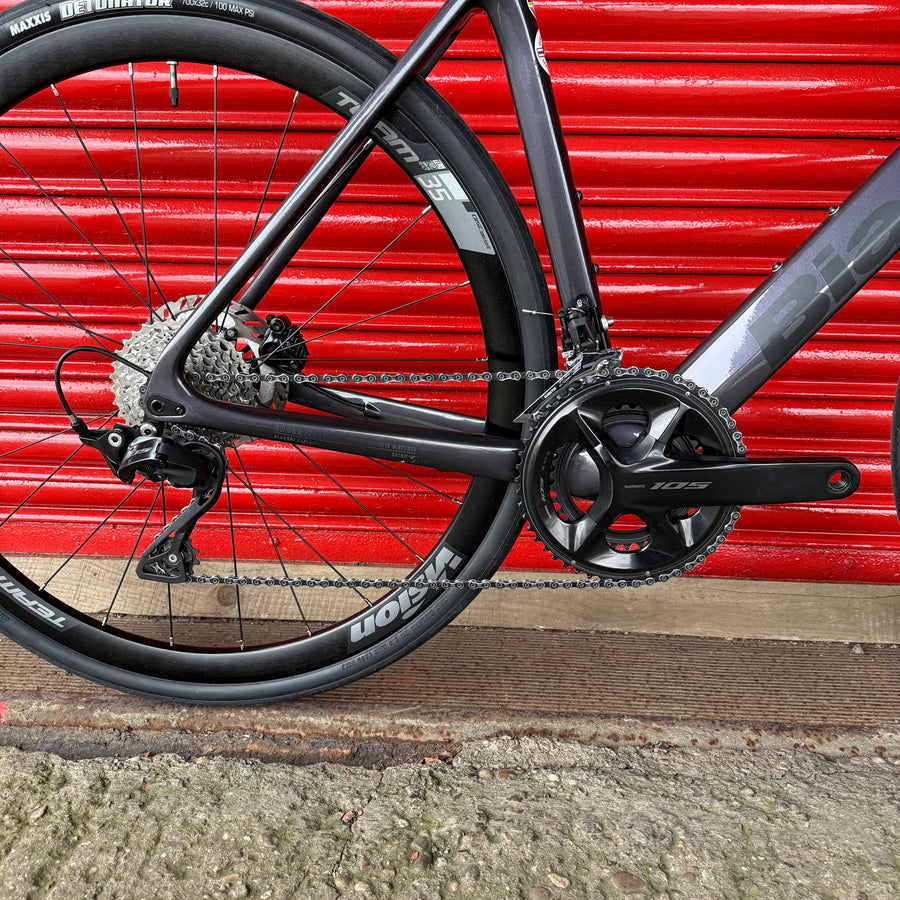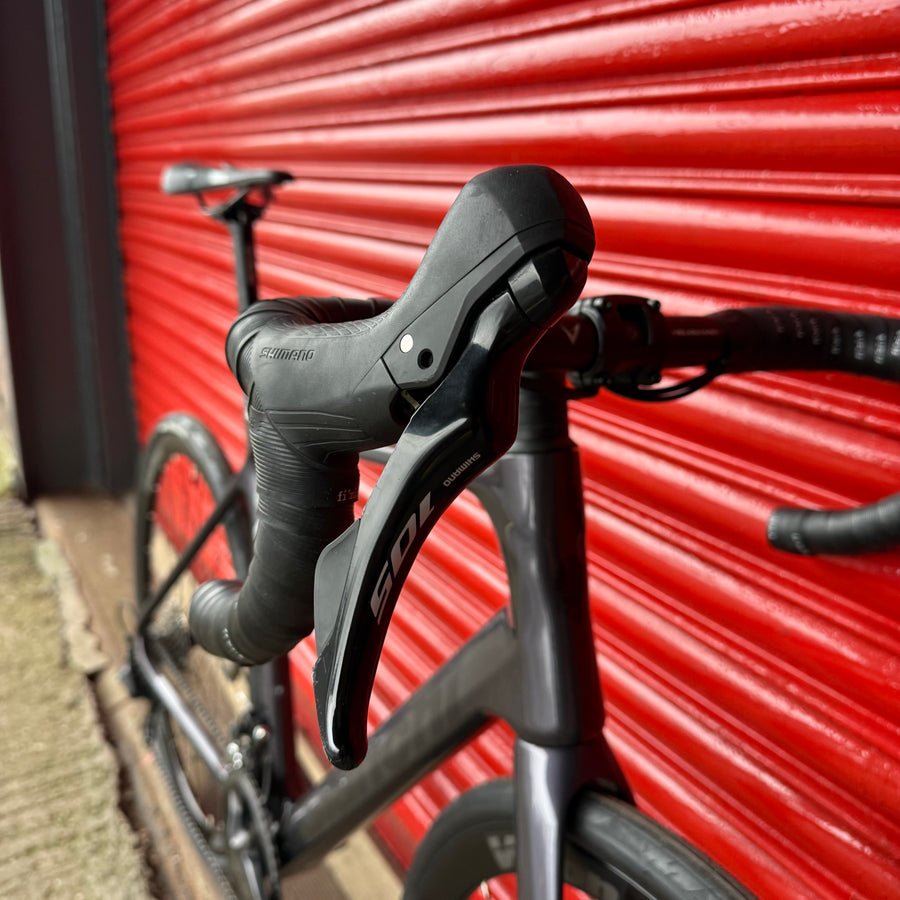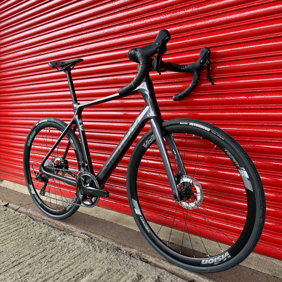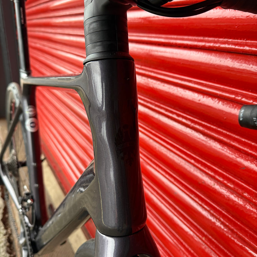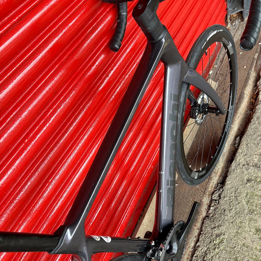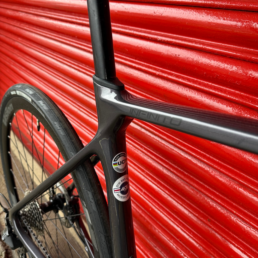 The clean lines of the bike are achieved by internal cabling. The bike also has a special integrated aluminum alloy stem and seat post, which have been developed for maximum efficiency and integrated appearance and functionality. 1 1/8" - 1.5" head tube ensures stability at high speed and when braking. The features of the new Infinito model are preserved even with different frame sizes. The different lengths of the rear structureaccording to the size chosen mean that the bike behaves the same no matter the size.