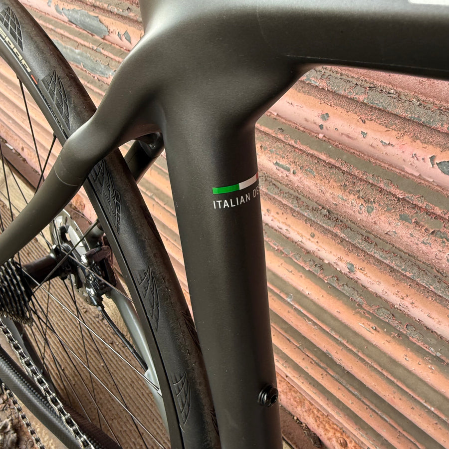 Taking design elements from their Aquila CV Time Trial bike such as the tapered aero, 1.1/8” to 1.1/4” head tube and bladed fork design, and extending the aero elements of the down tube, seat tube and seat stays, the XR4 Disc is visually more aggressive. Pleasing as this may be to the eye, the obvious benefit to the rider comes from the frame’s reduced drag.