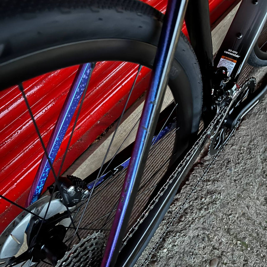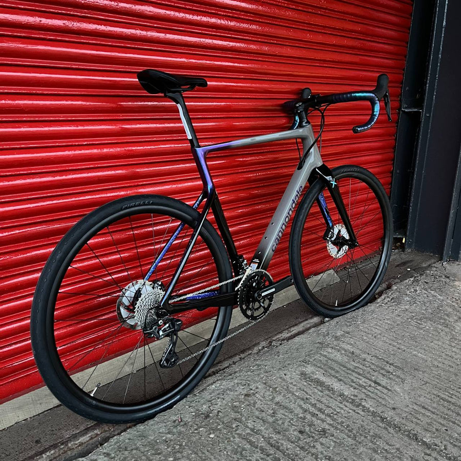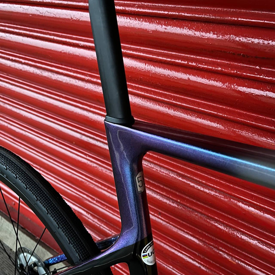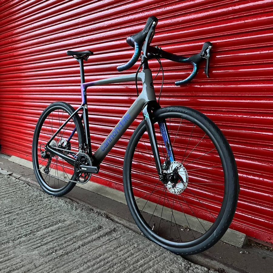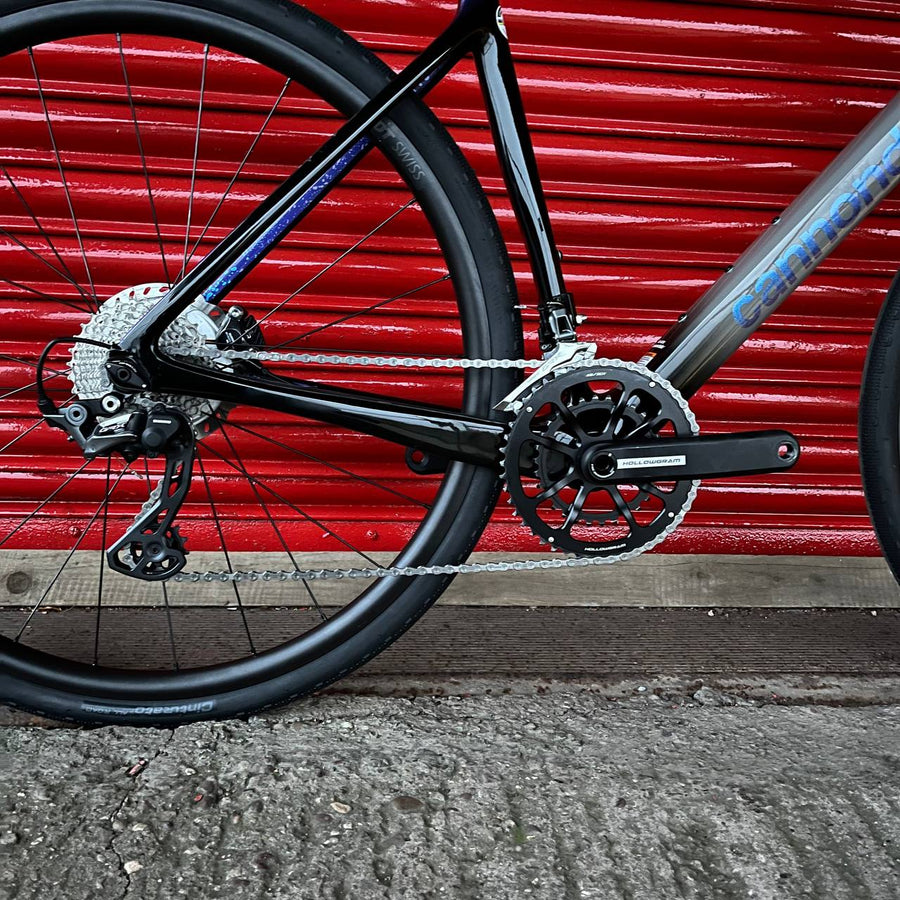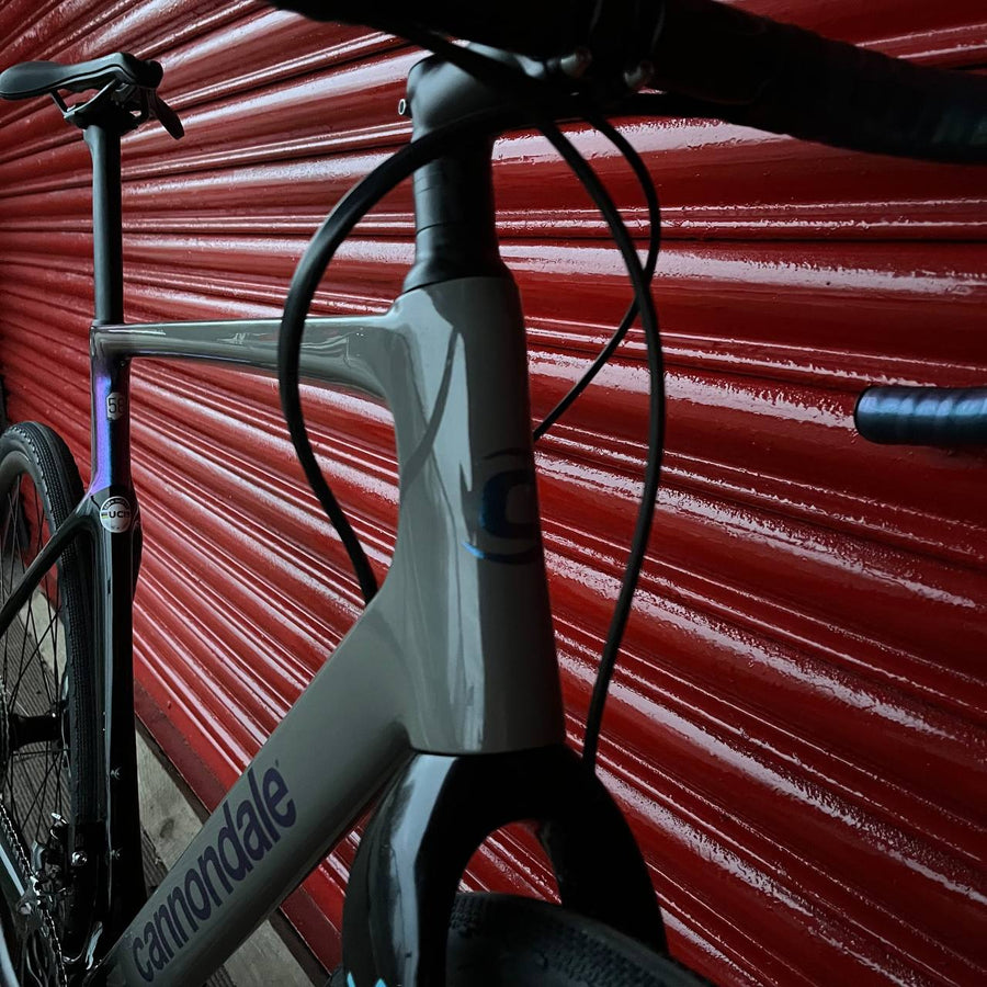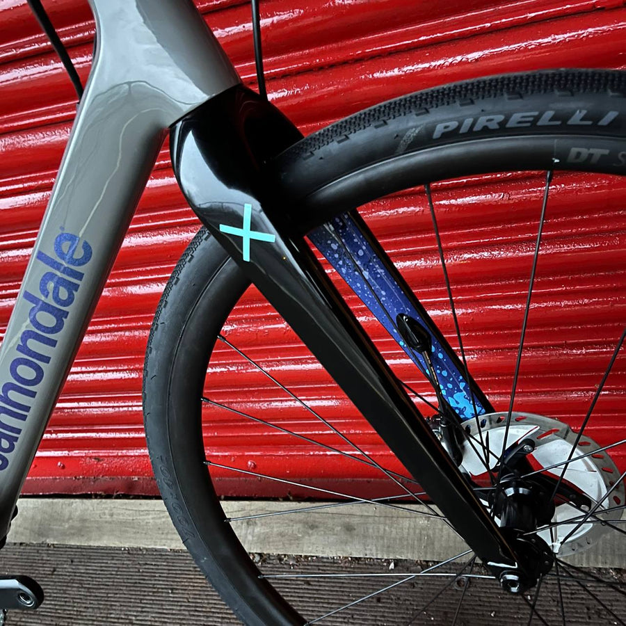 The carbon frame and fork both feature Cannondale’s Speed Release thru-axles for quicker wheel changes and the frame benefits from Ai offset design with shorter chainstays for snappier accelerations. OutFront geometry ensures that the handling remains composed and stable on technical courses whilst the aerodynamic tube shapes help with the speed on faster sections. Tyre clearance is huge, with 13mm of clearance on either side when using UCI legal 33mm rubber, so the chances of the frame getting clogged up with dirt are much reduced.
