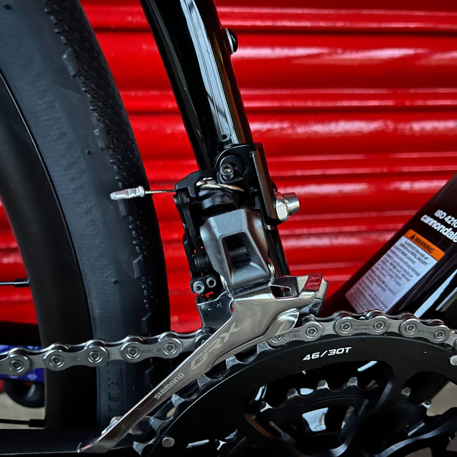 Shimano GRX 11-speed groupset provides the hydraulic brakes that are essential for control in muddy conditions and the 11-speed drivetrain. The shifters are easy to operate even when cold and wet, so shifting sprockets is never an issue and the internal cabling reduces mud contamination.