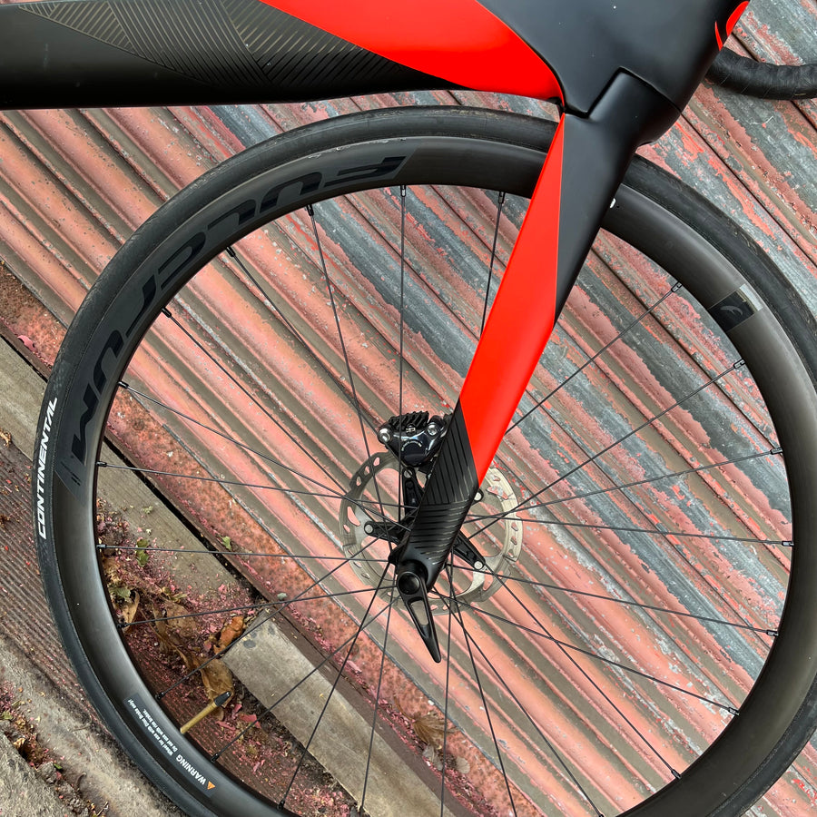 The bike's remarkable performance is primarily due to its exclusive disc brake system, which provides an aerodynamic efficiency that is unachievable with conventional caliper brakes.
