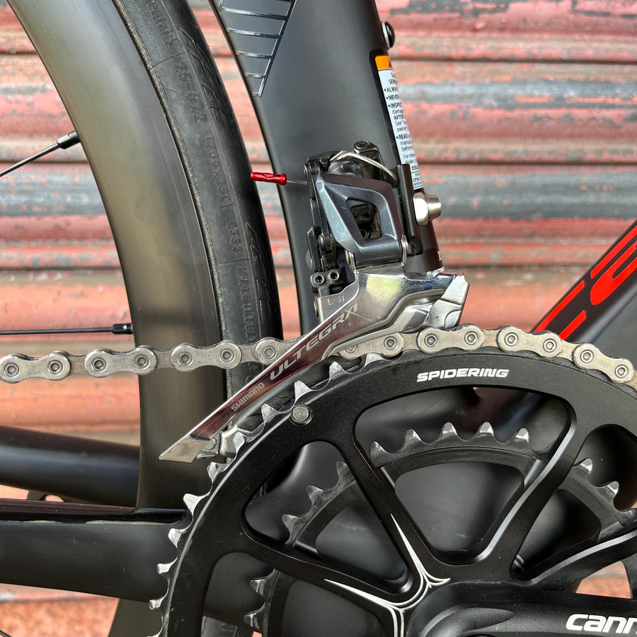 With the inclusion of the Ultegra Groupset, the SystemSix delivers the smooth, dependable gear changes that are synonymous with the Shimano 11-speed mechanical system, ranked second in their lineup. The 11-30T cassette offers a wide array of gears, ensuring riders are well-equipped for even the most challenging ascents.