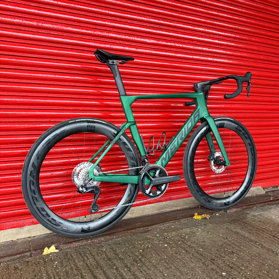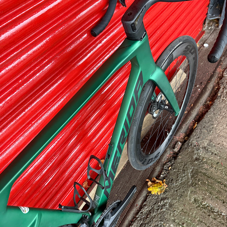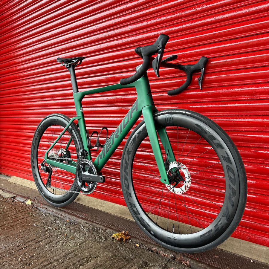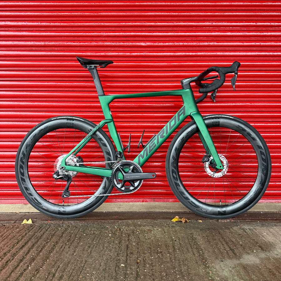 The Merida Reacto 8000 Road Bike's cutting edge frame features the WIRE PORT cable integration for a clean look and outstanding aerodynamics and the DISC COOLER technology for reliable braking performance even on the longest of descents giving the REACTO 8000 the edge. Combined with the beautifully crafted CF3 carbon frame, the 8000 impresses with remarkable acceleration and power transfer, low weight, impressive aerodynamics, perfect cable integration and outstanding aero bike comfort.