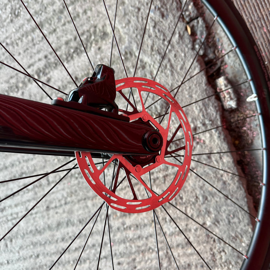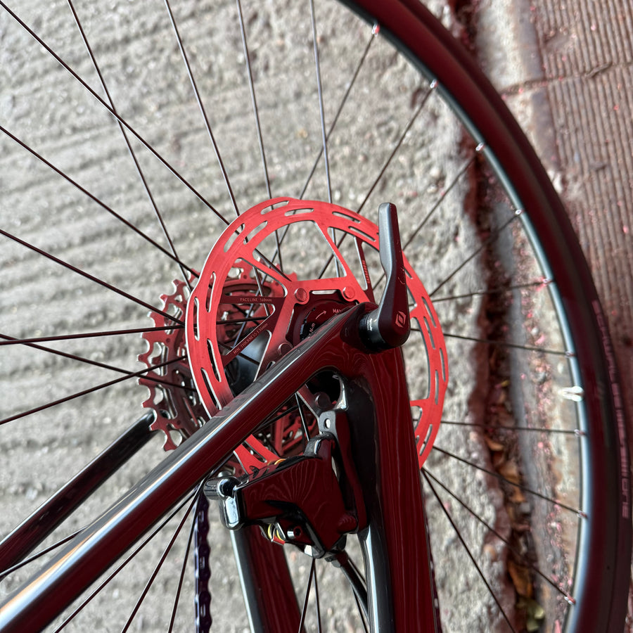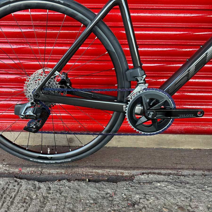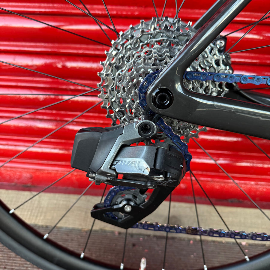 The Addict 10 comes with SRAM's entry-level wireless electronic shifting Rival AXS groupset. A quick breakdown: it's a completely wireless system that is very easy to set up and adjust should the need arise, as there is just a single button on each lever to change gear. In terms of shifting speed and quality it's great, and even though it is all electronic there is good feedback from the button to let you know the chain has moved.