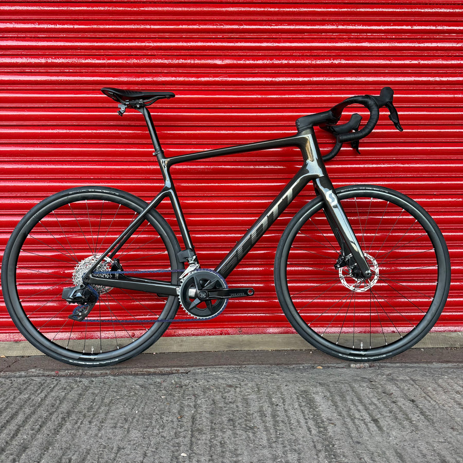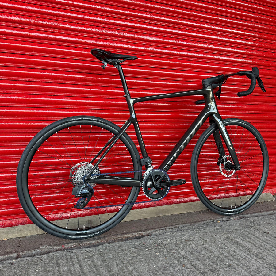 Scott's Addict 10 is a well-priced endurance bike with a high-performance ride. It has a firm feel to it, but the carbon layup helps keep the comfort levels up, and the SRAM Rival AXS groupset adds to the efficiency.