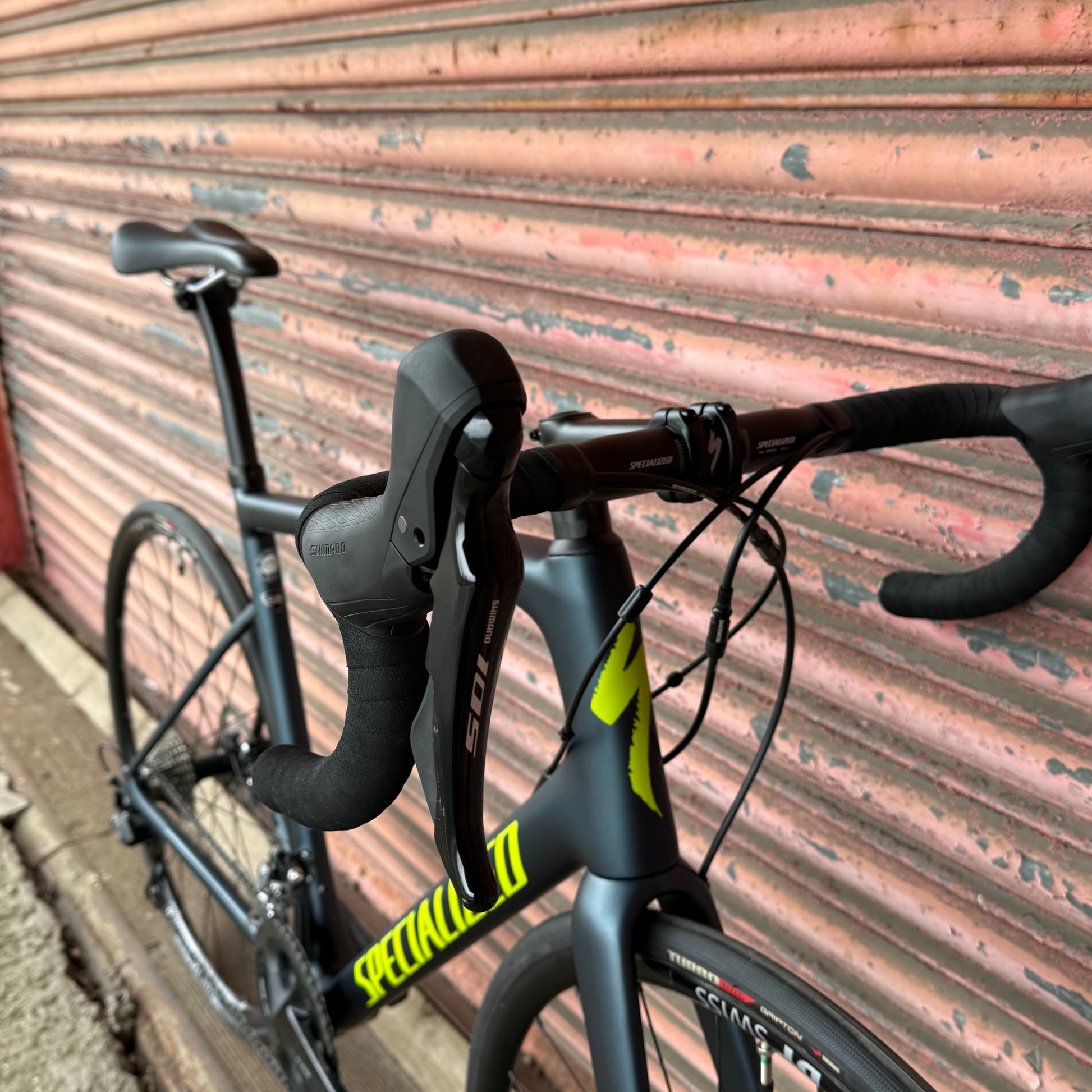 This Tarmac comes with a reliable spec that includes Shimano 105 mechanical shifting and quick-stopping hydraulic disc brakes, durable DT R470 Disc wheels, and the fan-favorite Power saddle.