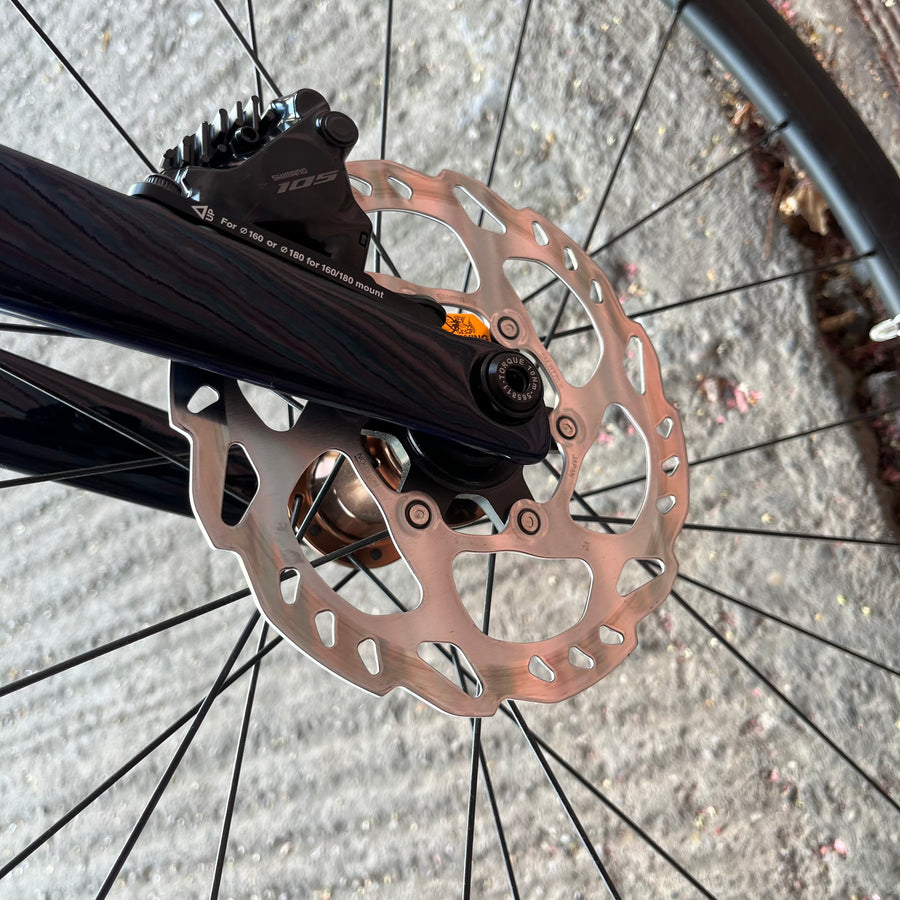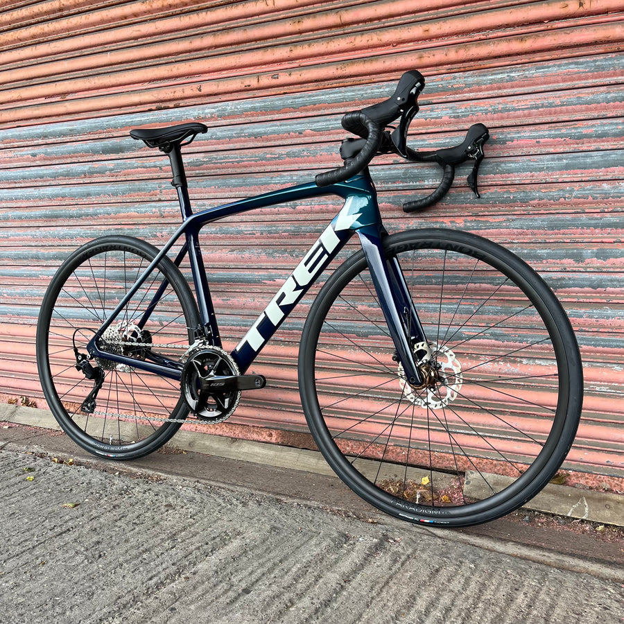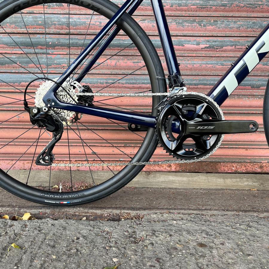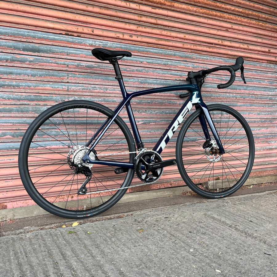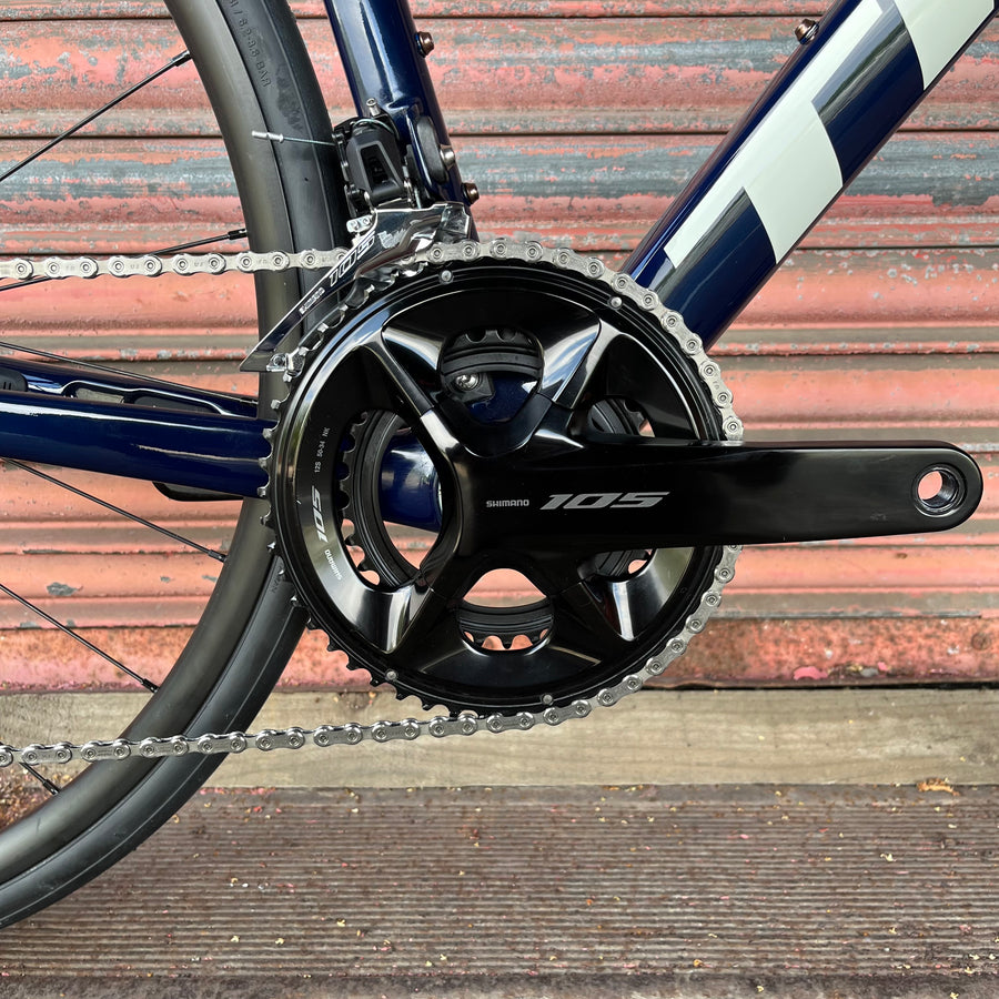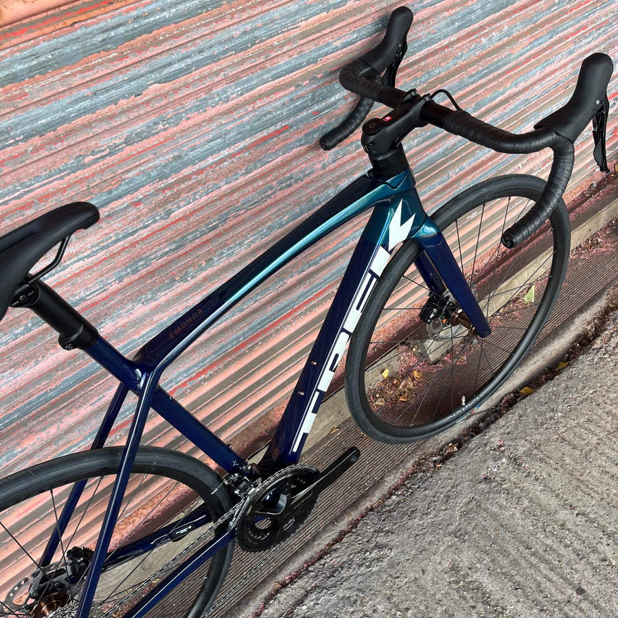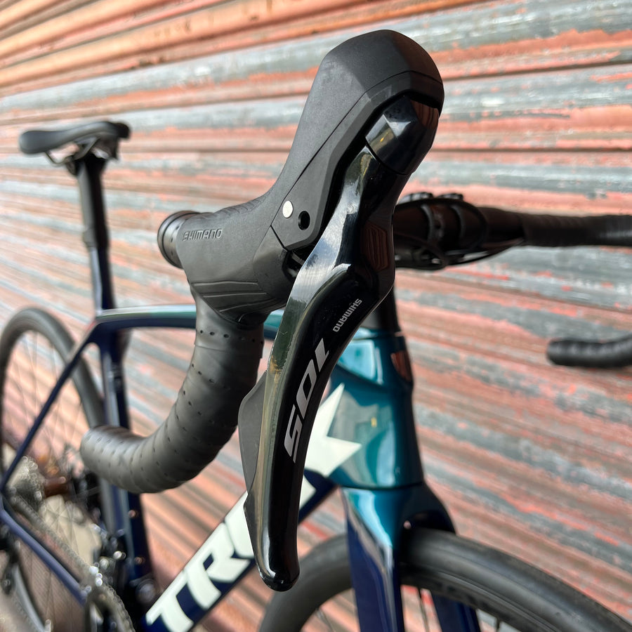The Émonda SL 5 Disc is a lightweight carbon road bike with a balanced ride quality, superior handling characteristics, a Shimano 105 drivetrain and the added benefit of free speed thanks to aero tube shaping. It's a great choice for century rides on hilly terrain, windy flats and speedy descents.