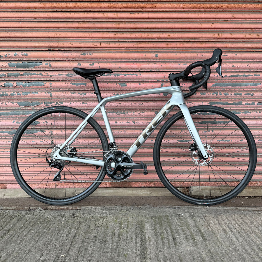 The Trek Emonda SL 5 Disc is a lightweight race bike from the renowned American brand, Trek. Designed with the mountains in mind, it adopts Trek's H1.5 geometry, which is consistent with the latest Madone SLR. This bike stands out with its stiff and efficient carbon frameset, making it an ideal choice for those who love climbing. The Emonda SL 5 Disc is equipped with the Shimano 105 R7020 groupset, which is known for its reliability. However, there's potential for component upgrades to further enhance its performance. The bike's frame is made from Trek's 500 Series OCLV carbon, weighing in at a claimed 1,142g, with the fork weighing 380g. Visually, the Emonda boasts an aero-optimized head tube and broad tube profiling, emphasizing its aerodynamic design. The frame also features fully internal cable routing, adding to its sleek appearance. The geometry is race-oriented, with a compact and aggressive fit, resulting in sharp handling and efficient power delivery. In terms of performance, the Emonda SL 5 Disc is known for its sharp reactions and is particularly adept at climbing. While the bike comes with a solid build, some components, especially the wheels and tires, might benefit from upgrades to unlock its full potential.