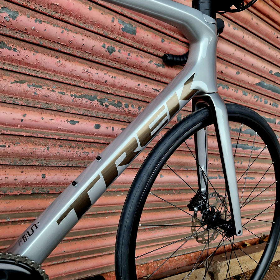 The Trek Emonda SL 5 Disc is a lightweight race bike from the renowned American brand, Trek. Designed with the mountains in mind, it adopts Trek's H1.5 geometry, which is consistent with the latest Madone SLR. This bike stands out with its stiff and efficient carbon frameset, making it an ideal choice for those who love climbing. The Emonda SL 5 Disc is equipped with the Shimano 105 R7020 groupset, which is known for its reliability. However, there's potential for component upgrades to further enhance its performance. The bike's frame is made from Trek's 500 Series OCLV carbon, weighing in at a claimed 1,142g, with the fork weighing 380g. Visually, the Emonda boasts an aero-optimized head tube and broad tube profiling, emphasizing its aerodynamic design. The frame also features fully internal cable routing, adding to its sleek appearance. The geometry is race-oriented, with a compact and aggressive fit, resulting in sharp handling and efficient power delivery. In terms of performance, the Emonda SL 5 Disc is known for its sharp reactions and is particularly adept at climbing. While the bike comes with a solid build, some components, especially the wheels and tires, might benefit from upgrades to unlock its full potential.