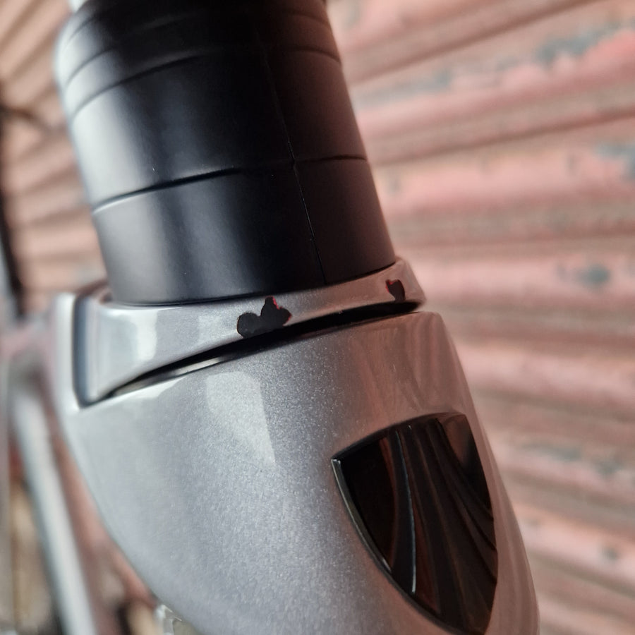 Bike is in mint condition except for the crack in the spacer (can be replaced cheaply), see the photos.