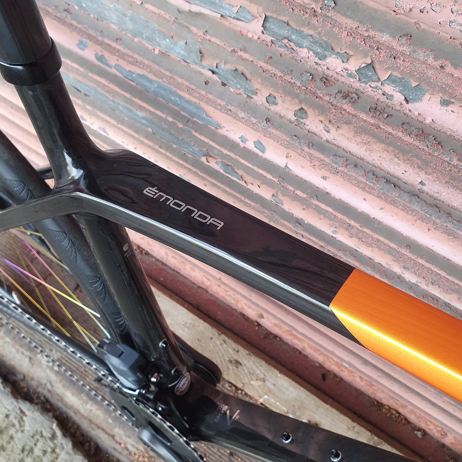 The Trek Emonda SL7 is described as an "aeroclimber" that brings a smile to the face. The bike's design has evolved with the times, incorporating aerodynamic features even in lightweight models. The new Émonda is set to be ridden by professional cyclists like Vincenzo Nibali and Lizzie Deignan. The frame showcases Kammtail profiles and emphasizes aerodynamics over mere weight reduction. The bike is optimized for climbing mountains such as the legendary Alpe d’Huez. The frame design is based on "unsteady aerodynamics", making it suitable for both professionals and amateurs. The bike is said to be 60 seconds faster per hour on flat terrains and 18 seconds faster on gradients like Alpe d’Huez compared to its predecessor. The frame has fully integrated cables and brake hoses.