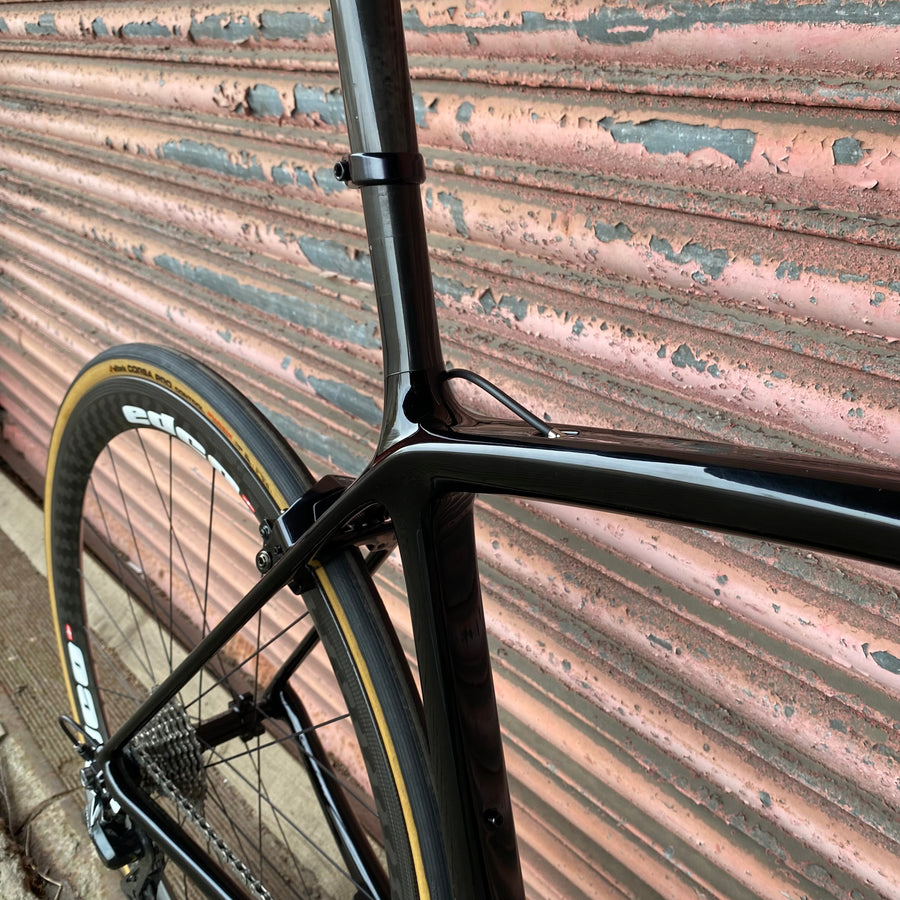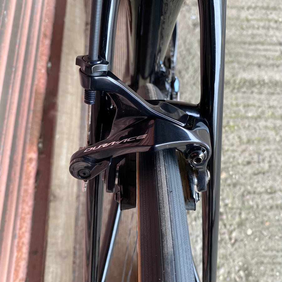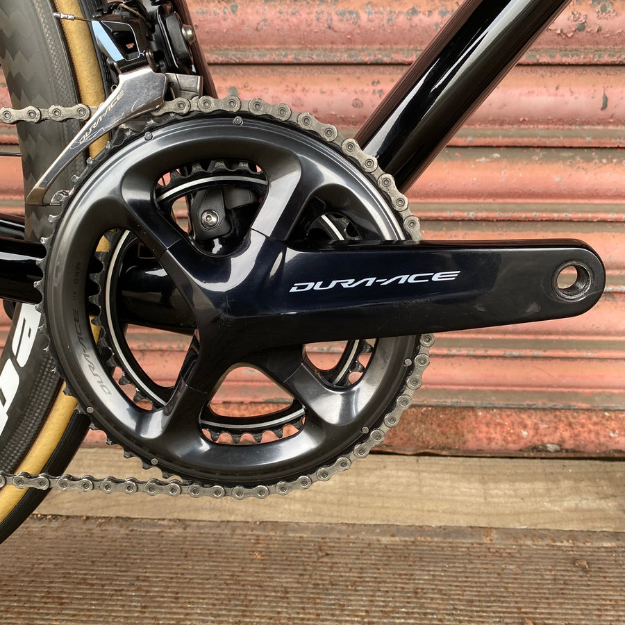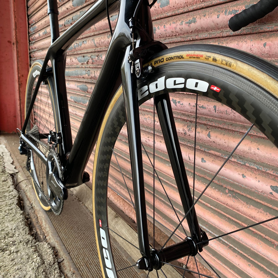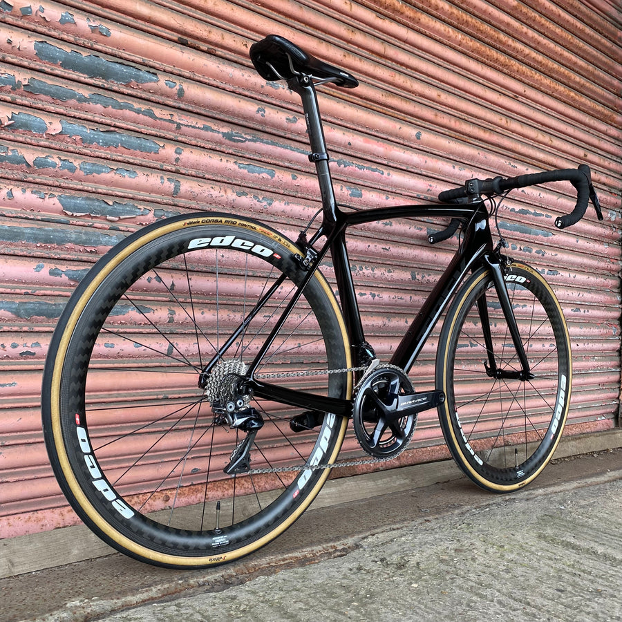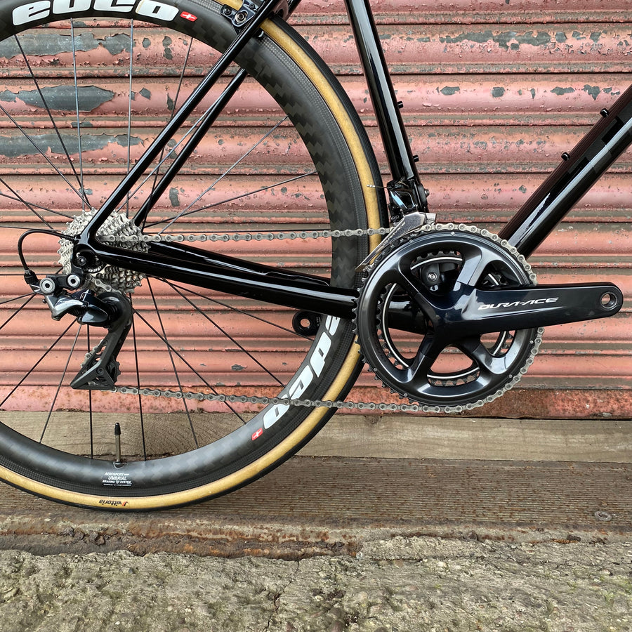 Feel the precision gear changes with the Shimano Dura Ace R9100 groupset - 11-speed mechanical perfection that shifts like a dream and powers every climb with unrelenting force. Paired with the Edco Umbrial carbon wheels, this beast slices through the air, delivering unmatched speed and stiffness that’ll leave your rivals in the dust.