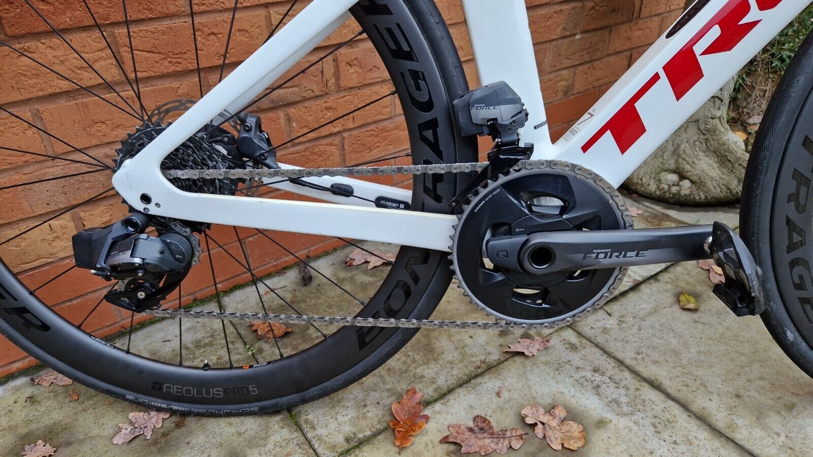 Overall in very good condition, slight mark on the top tube where the madone name is and slight scuffing to shifters.