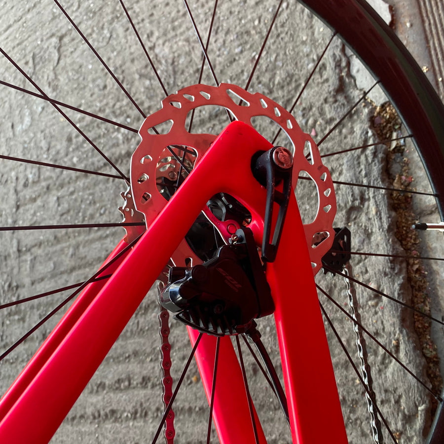 Madone SLR Disc is light, fast and smooth. It's built with our top-end aero OCLV Carbon frame, Adjustable Top Tube IsoSpeed, hydraulic disc brakes for all-weather stopping power and control and an electronic drivetrain for fast and reliable shifting.
